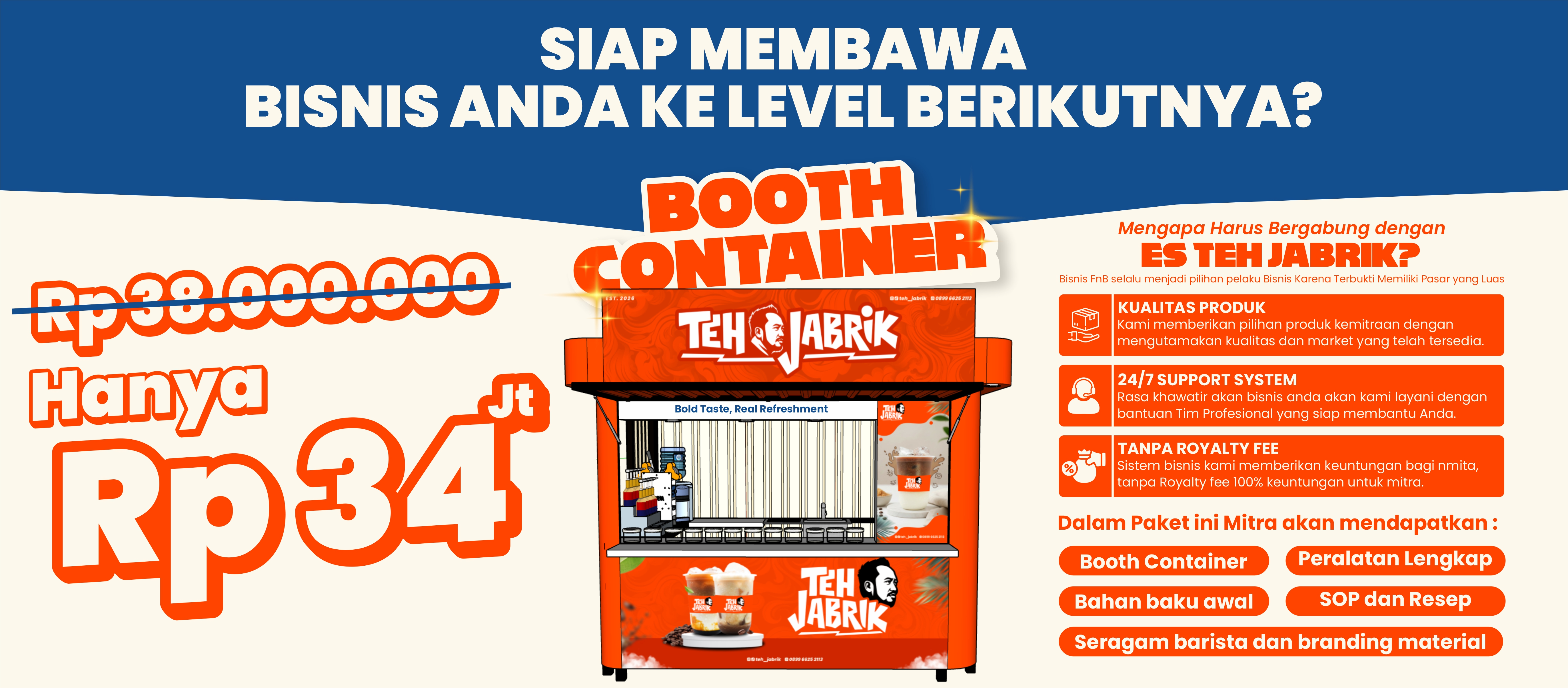 Kami memahami bahwa kunci dari bisnis minuman bukan hanya tren, tetapi juga konsistensi. Karena itu, Teh Jabrik menjaga kualitas rasa, kemudahan operasional, serta efisiensi modal agar usaha bisa berjalan stabil dan berkelanjutan.